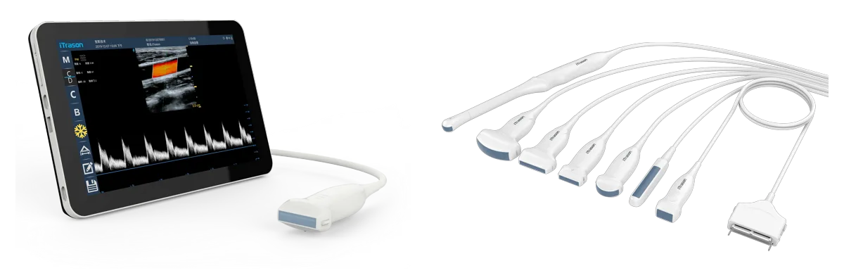 Portable Ultrasound Scanner for diagnostic imaging. Designed for general imaging, wards, outpatients, theatres. Configurations with wide range of probes, offering specified applications and user presets, easy to access and change parameters. Or multiple scanning applications within point of care or shared hospital environments.Cost effective yet, ultra-modern scanner for hospitals and clinics. Confuguration avilable based on exact and required scanning applications. All basic modes colour and doppler ultrasound modes are included. Advanced Needle guide options and educational packages. Specific fetures of Patient archive and full connectivity to PACS etc. Eenables this ultrasound scanner an excellent tool for clinicians and sonographers, easy to keep clean and light weight as an off the site scanner for emergency or guided procedures. Covering most general ultrasound imaging needs in a light weight portable format.Revolutionizing Medical Imaging: The Power of Handheld Ultrasound Devices Connected to Tablets, PCs, or Mobile Phones